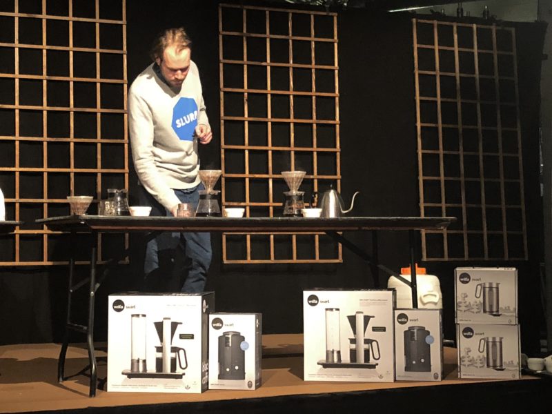 Tilassa kierrellessä iloiset paahtomestarit, baristat ja muut kahvialan ammattilaiset tempaisevat mukaansa kertoessaan kahvin maailmasta. Lähes jokaisella pisteellä on mahdollista maistella kahvia tai teetä, ja onpa Lehmus Roasteryn pisteellä mahdollista nähdä myös itse paahtomestari työssään pienen paahtokoneen kanssa. Slurpin pisteellä käytiin erittäin mielenkiintoisia keskusteluja kahvista ylipäänsä ja siitä, miten tavoitteena on mahdollistaa lähes kaikkien festareillakin olleiden pienpaahtimokahvien saatavuus riippumatta lokaatiosta. Kiitos kaikille pisteellämme vierailleille hyvistä keskusteluista!