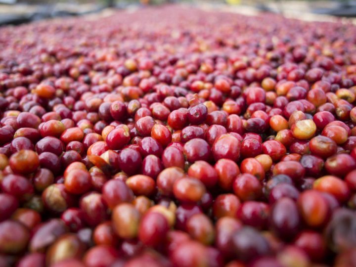 After picking the cherries are immediately picked up from the farms and transported to the Karana processing station which is located at a lower elevation of only 600 meters above sea level near the touristic town of Ubud where the conditions are perfect for drying. This is where the cherries are laid out under covers on drying beds for 24hrs, then moved outside to concrete patios in the full sun for 22 days.
