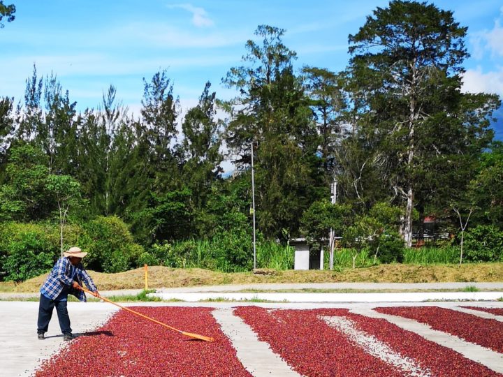 Our coffee is a Gesha cultivar that Pablo originally brought from Panama in 2011. Like with all coffees at El Obraje, the maturity level of Gesha cherries is carefully monitored by Brix measurements and the level of progress between lots is recorded. After that, they make a picking game plan to pursuit efficiency of picking labor. At El Obraje, they rest all coffee cherries in the bags they were picked into for approximately 20 hours. After that, cherries going for Natural processing are float-sorted and taken to African-style beds to dry. The drying period varies depending on climate conditions. Usually, natural drying takes 30 days.