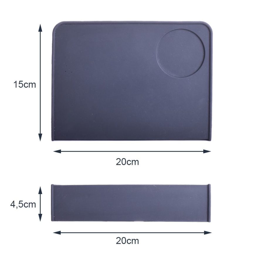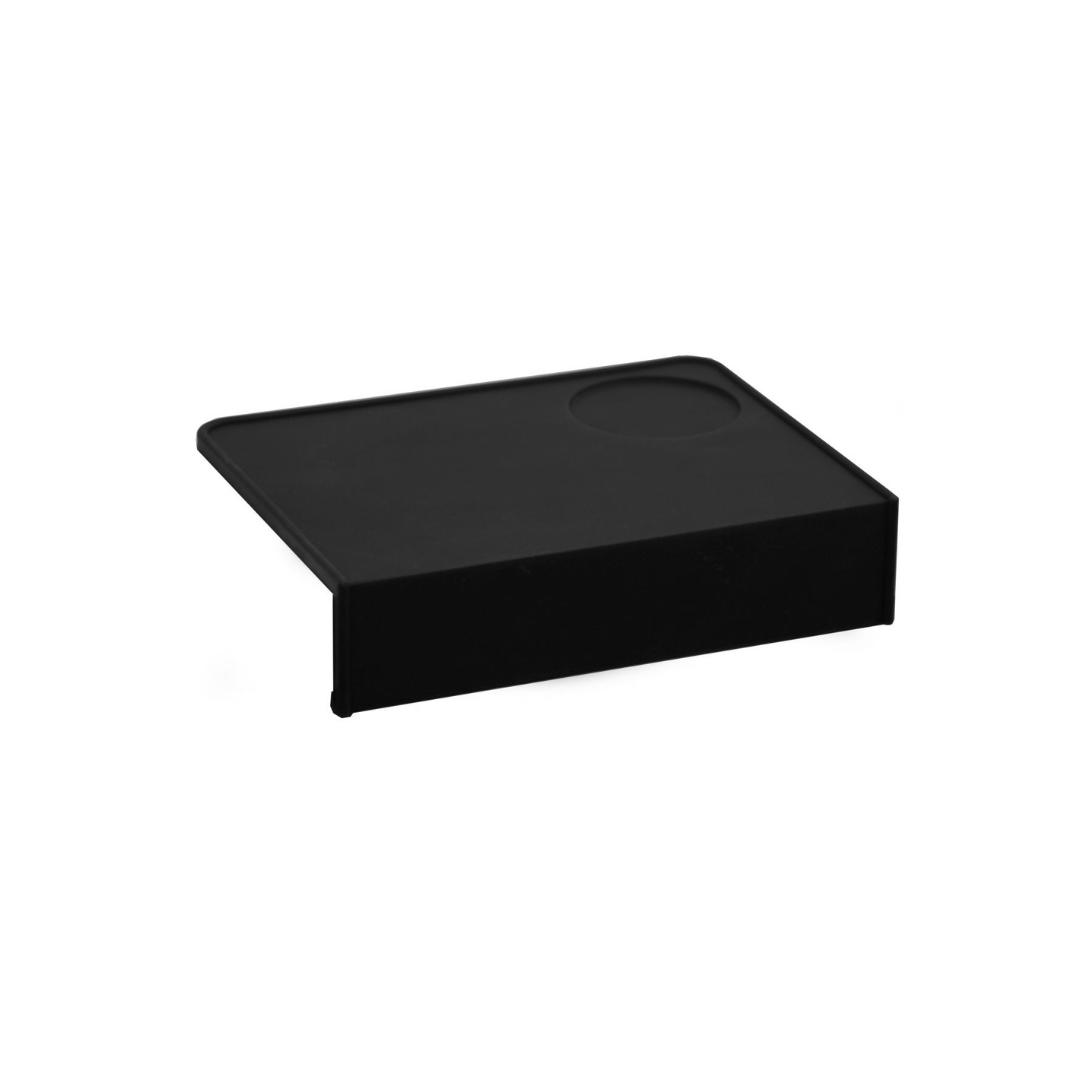 This newly designed and improved development of our popular pressing mat consists of 5 mm thick silicone, which is increased to a full 8 mm in the edge to ensure even more stability and cleanliness when tamping. The rigidly incorporated 90° fold on the front allows you to place this practical utensil securely and non-slip on the edge of a table or counter. The silicone is food safe.