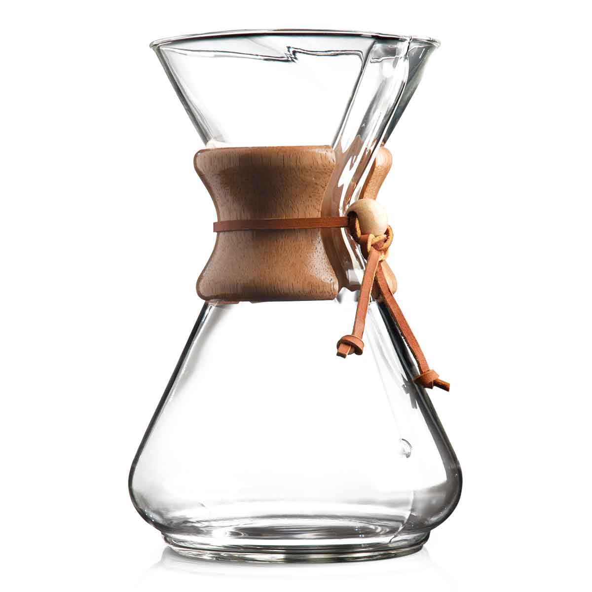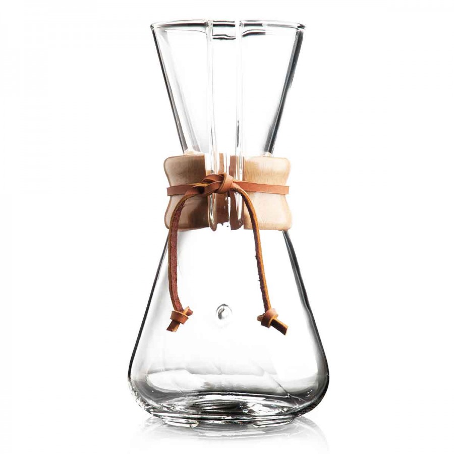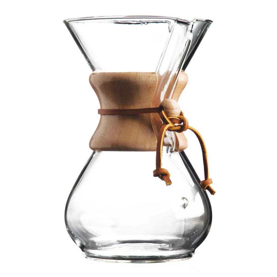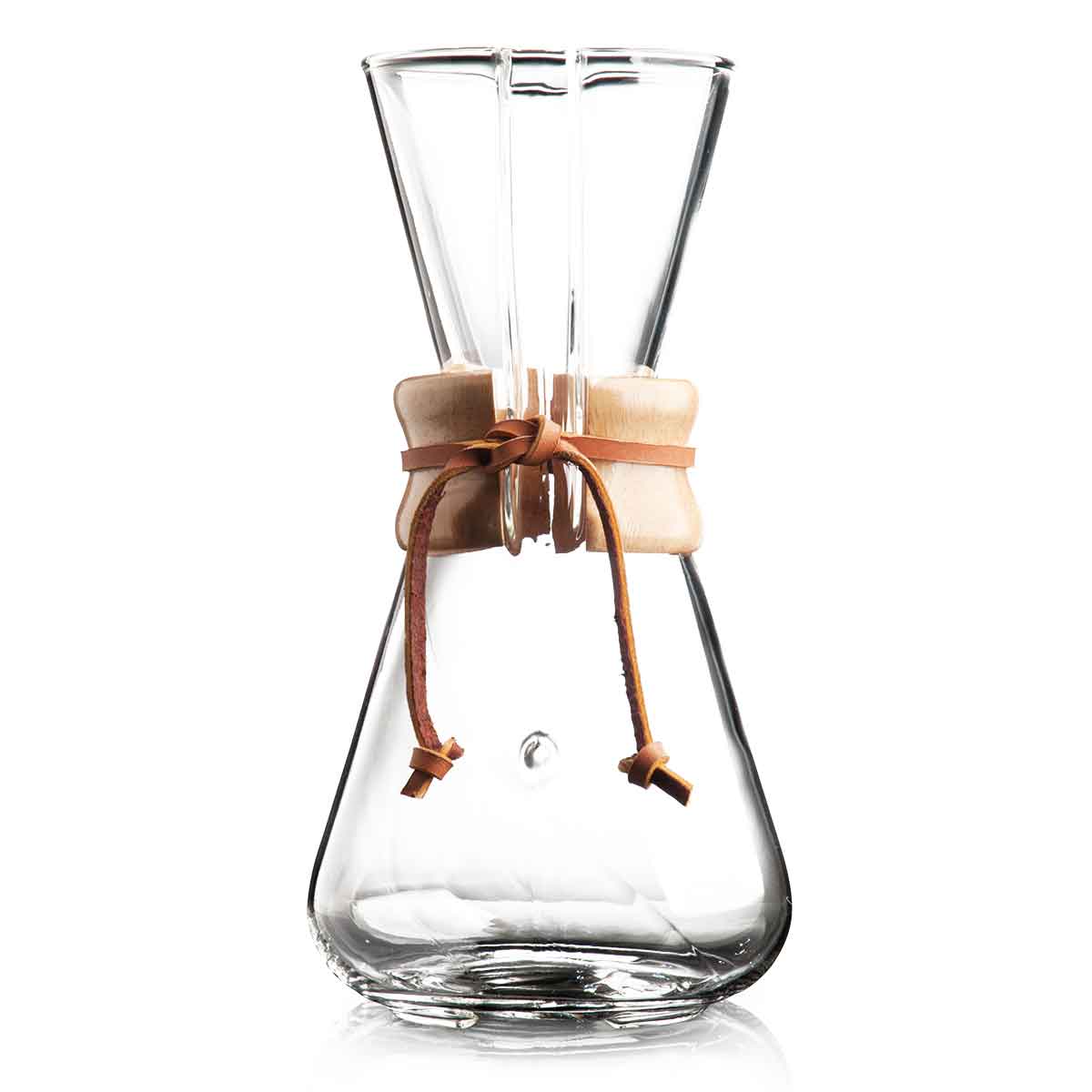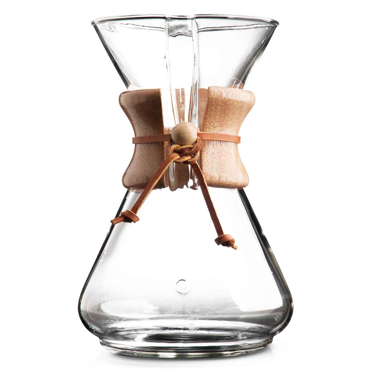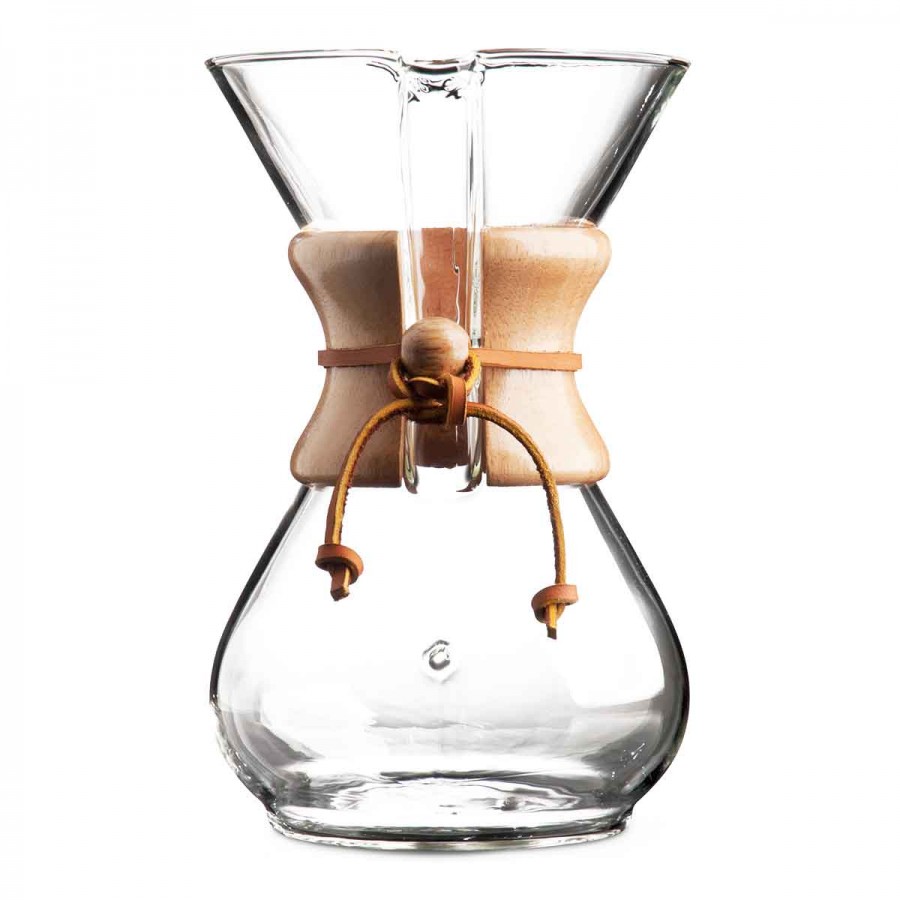 Chemex is a beautiful and handy carafe for brewing the most delicious coffee. Along with its stunning looks, what makes a Chemex special are its filter papers. Chemex’s own filter papers are relatively heavy and they filter the coffee with high efficiency. The final result both tastes and looks clean and clear. Especially natural processed and very dark coffees suit the Chemex excellently. Choose from three sizes: 3, 6 or 10 cup capacity.