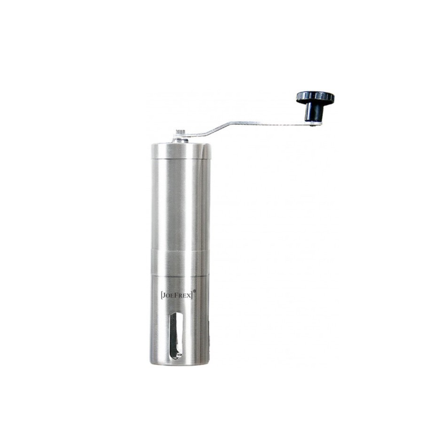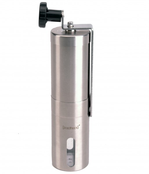 Conveniently sized hand coffee grinder made of stainless steel, with removable handle and adjustable grinding level. Enjoy fresh coffee everywhere!