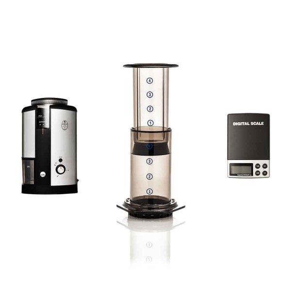 Aeropress on ainutlaatuinen kahvilaite, joka on noussut suosioon puhtaan sekä erittäin pehmeän ja aromaattisen kahvinsa ansiosta. Aeropressillä valmistat kaksi kupillista kahvia kerrallaan, joten se on täydellinen esimerkiksi pieniin talouksiin.