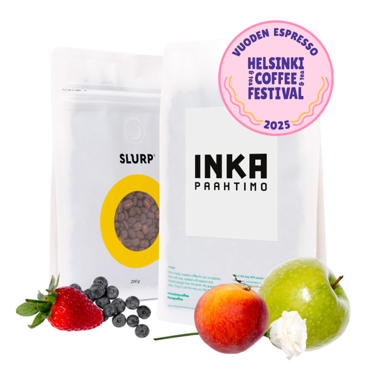Koe tämä erittäin herkullinen, raikas ja marjaisa Vuoden Espresso 2025, joka on saanut 88.5 pistettä kansainvälisessä laatuluokituksessa.