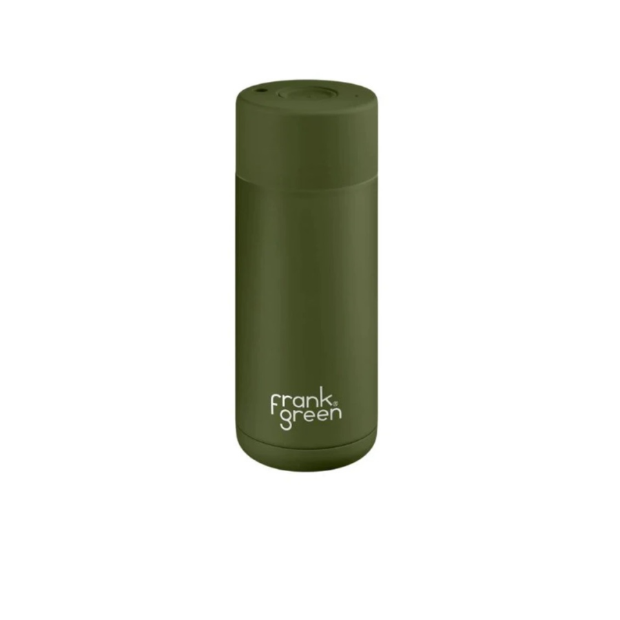 Frank Green keraaminen termoskuppi 475 ml on tilava termoskuppi sulkupainikkeella. Termoskuppi on innovatiivinen yhdistelmä keramiikkaa ja ruostumatonta terästä. Nämä ja kolmikerroksinen tyhjiö eristys takaavat, että juomassa säilyy maku, aromi ja lämpötila juuri sellaisena kuin haluat – joko kylmänä tai kuumana. Kuppiin ei tule makuhaittoja sen sisäpinnan vuoksi, vaikka siirryt kahvista veteen tai mehuun.