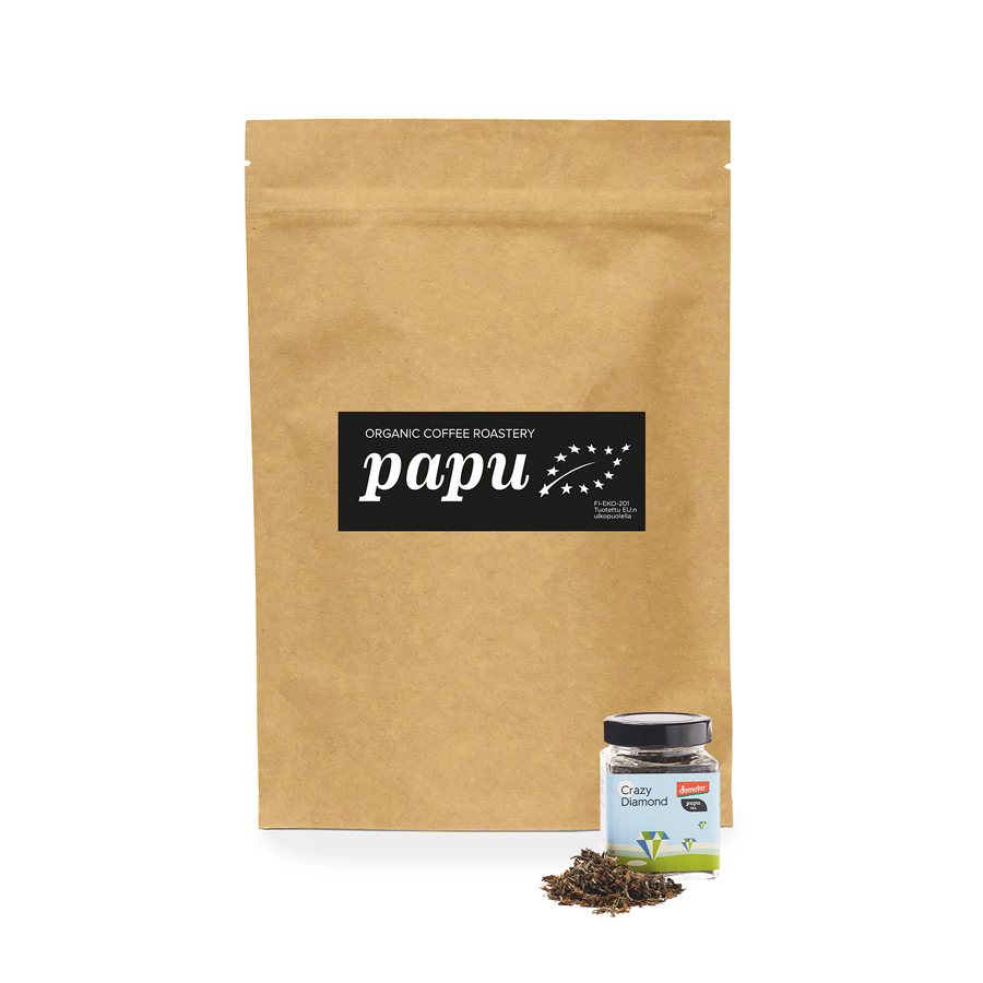 Crazy Diamond Luomu on korkealaatuinen Darjeeling tee kevään ensimmäisistä lehdistä. Tee tulee Rongbongin laaksosta, Intiasta. Tämä maultaan pehmeä Darjeeling on väriltään hennon vihreää.