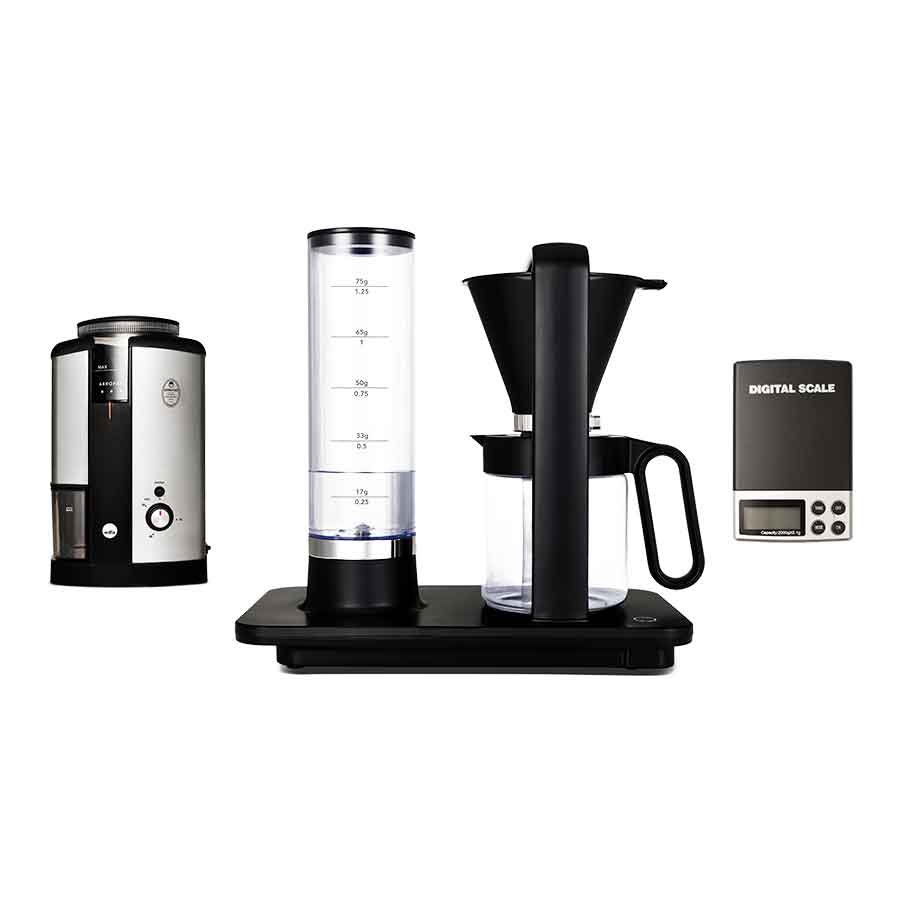 Mittaamista varten paketissa on kätevä digitaalinen vaaka. Pakettiin kuuluu myös Wilfan kahvimylly, koska kahvi on parhaimmillaan vastajauhettuna. Tämä ratkaisu sopii erinomaisesti niin yhden kuin useammankin kahvinjuojan talouksiin. SLURP perinteinteinen on mausta tinkimättömän, mutta kahvinkeittimen helppoutta ja vaivattomuutta arvostavan kahvinystävän valinta.
